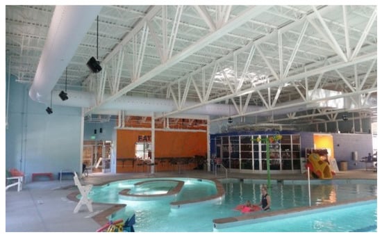 - Leverette, J.; Gebke, K.; Idem, S. Pressure and velocity variation in a fabric air dispersion system. HVAC&R Res. 2014, 20, 862–874. [Google Scholar]