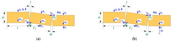 Since it is assumed that the block C sinks as a whole , as in Figure 4b, then and decrease and increase , respectively, where is the rock density, kg/m3; is the acceleration of gravity, kg/m2, at which point there are Equations (13) and (14).