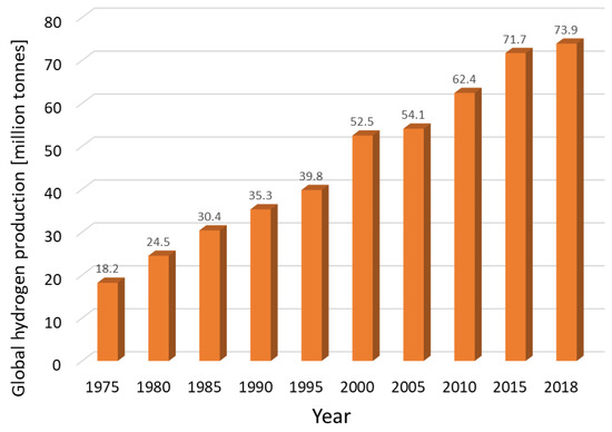 Hydrogen can be produced by a variety of processes. Currently, thermochemical processes are used most often, in which hydrogen is released from organic materials (fossil fuels, biomass, water) [22]. Hydrogen gas can be produced from hydrocarbon fuels by three basic technologies [23]: