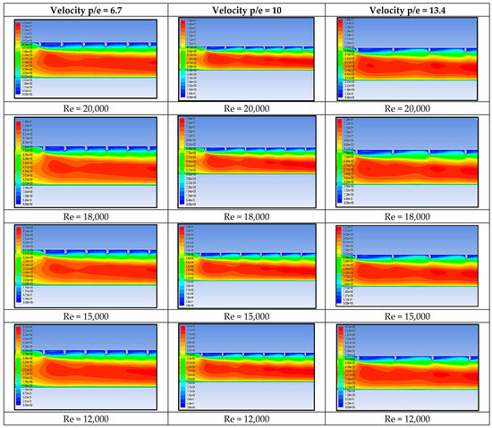 - Balakrishnan, A.R.; Khader, M.A. Numerical investigation of heat transfer augmentation in a rectangular duct using discrete multiple V-ribs. Int. J. Heat Mass Transf. 2015, 91, 421–430. [Google Scholar]