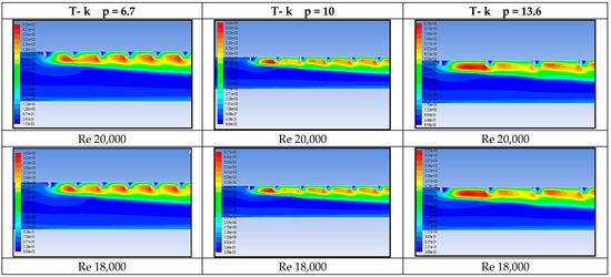The selection and validation of a turbulent model play crucial roles in accurately predicting the thermal coefficient augmentation for a given geometry. In order to investigate this, a literature survey was conducted. The Dittus–Boelter equation (Equation 10) was used for validation purposes [31,32]. For the specific case of a smooth duct in a solar air heater, the Nusselt number (Nu) was compared among various turbulent models, including: