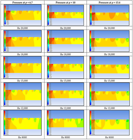 The detailed results of this comparison are presented in Figure 8. It was observed that the RNG renormalization k-ε model significantly disrupted the streamline flow and provided Nusselt number values closer to those predicted by the empirical equation. In contrast, the other models either overestimated or underestimated the Nusselt number. As a result, for simulating heat transfer in the current study, the RNG renormalization k-ε model was selected, in agreement with reference [23]. In addition, Figure 8 shows a new form of the correlation formula for the Nusselt number Nu, taking into account 3 different ranges of the Prandtl number Pr [33].