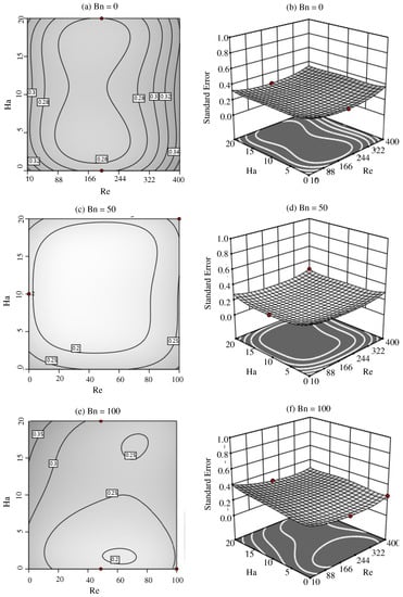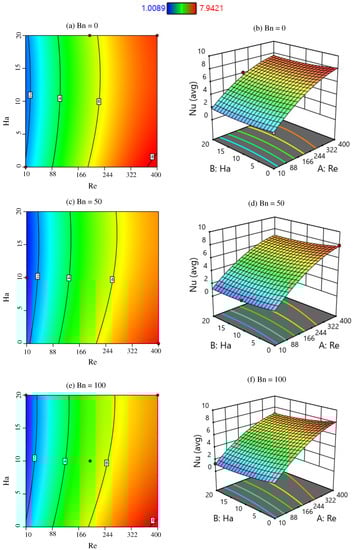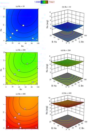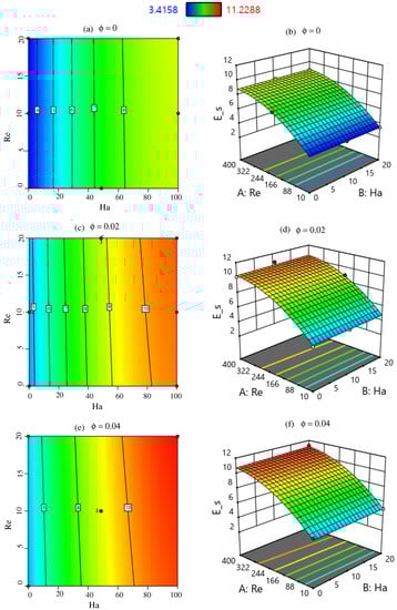 The Bejan number () is the ratio of entropy produced by heat transfer to total entropy production, and it can be defined as follows [13,57,71]: