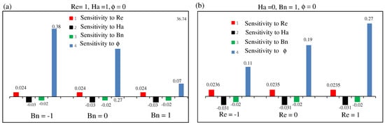 where and are the heat capacity and thermal expansion coefficient of the base fluid, respectively, and and represent the heat capacity and thermal expansion coefficient of the solid particle, respectively. The electrical conductivity for the nanofluid is defined by from the Maxwell–Garnetts (MG) models [58,59] for nanofluid as: