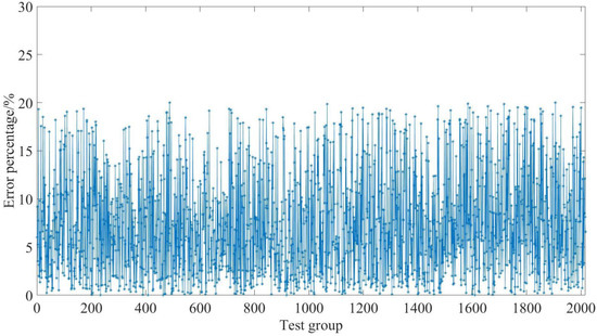 From Table 14, it can be seen that although the minimum error percentage of the PCA-SSA-BP model is not the smallest, the median and maximum error percentages are reduced compared to the other four algorithms. Therefore, the accuracy of the transformer loss prediction model can be improved by using PCA-SSA-BP. Compared with the transformer loss prediction model based on the BP network, the accuracy of the transformer loss prediction model based on PCA-SSA-BP has been improved by 1.12%; Compared with the transformer loss prediction model based on the GA-BP network, the accuracy of the transformer loss prediction model based on PCA-SSA-BP has been improved by 1.01%; Compared with the transformer loss prediction model based on PSO-BP network, the accuracy of transformer loss prediction model based on PCA-SSA-BP has been improved by 0.82%; Compared with the transformer loss prediction model based on SSA-BP network, the accuracy of transformer loss prediction model based on PCA-SSA-BP has been improved by 0.31%. The transformer loss prediction model based on PCA-SSA-BP is accurate by using 2016 groups of data. It is suitable for the loss estimation of power flow calculation in the distribution network.
