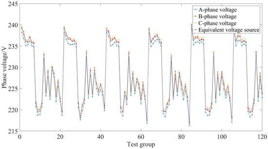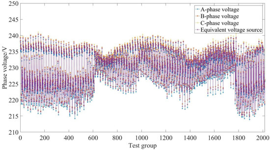The comparison diagram between the three-phase voltage source value calculated by the CGO algorithm and the three-phase voltage detected by the distribution network is now listed. The comparison diagram is shown in Figure 6.