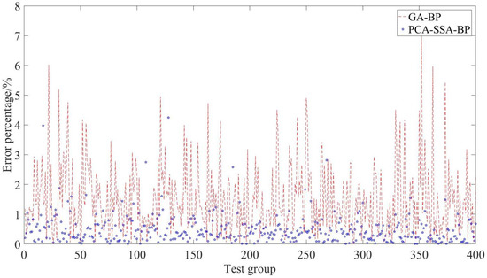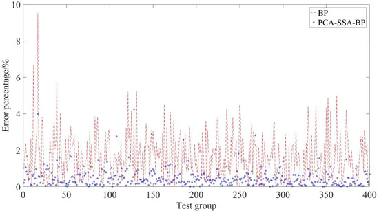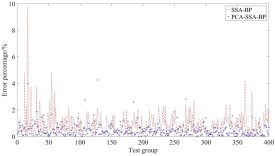 Error percentage of SSA-BP and PCA-SSA-BP.