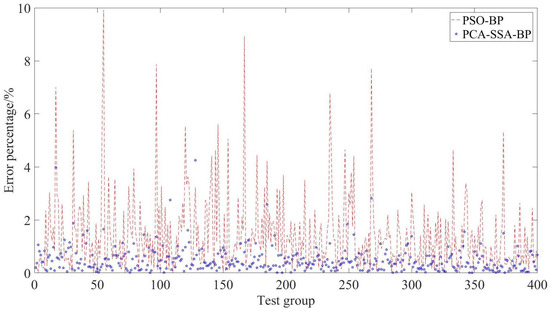 Error percentage of PSO-BP and PCA-SSA-BP.