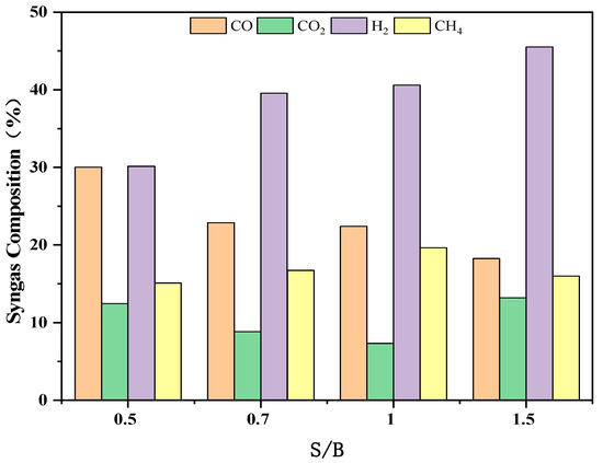 Effect of S/B on gas composition.