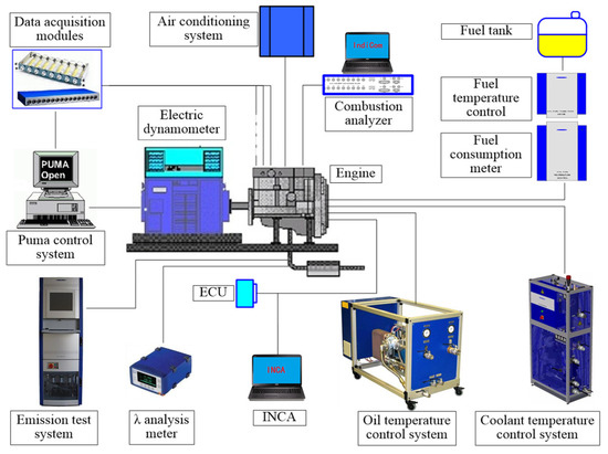 The specifications of the main test instruments and equipment, utilized for the benchmarking tests, as well as for the validation tests, were listed in Table 2. A state-of-the-art engine dyno test bench and equipment were used, as shown in Figure 2. Therefore, the measurement accuracy and repeatability of each test are assured.