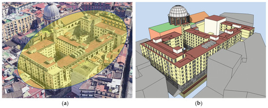 The building under analysis dates from the second half of the sixteenth century but was then demolished and rebuilt between 1965 and 1974. It has the architectural and compositional characteristics typical of those years for Southern Italy and therefore is representative of all the construction of that era and of that climatic location. It houses the Architecture Department of the University of Naples Federico II and is dedicated to both offices and classrooms. The model of the building is realized in DesignBuilder® (version 6.1.8) environment (Figure 1).