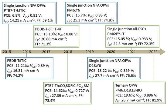 Timeline of the representative works in OPV research.