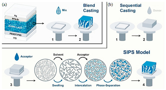 - He, C.; Pan, Y.; Lu, G.; Wu, B.; Xia, X.; Ma, C.Q.; Chen, Z.; Zhu, H.; Lu, X.; Ma, W. Versatile Sequential Casting Processing for Highly Efficient and Stable Binary Organic Photovoltaics. Adv. Mater. 2022, 34, 2203379. [Google Scholar] [CrossRef]