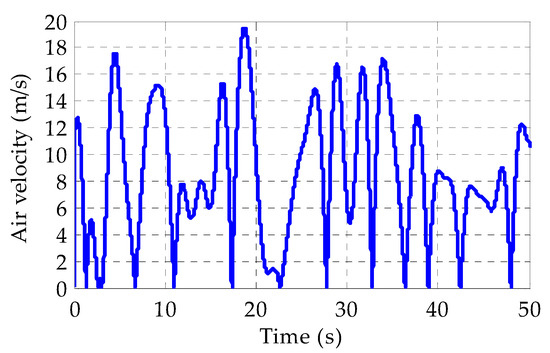 The OWC comprises a hermetically sealed chamber featuring top and bottom apertures, along with four surrounding side walls (refer to Figure 1). Positioned in the water, the bottom of the chamber is partially submerged and experiences the impact of incoming waves. The variation in sea level, manifested as the wave height, induces a bidirectional airflow within the chamber. The mathematical representation of the air velocity is defined by the equation provided in [24].