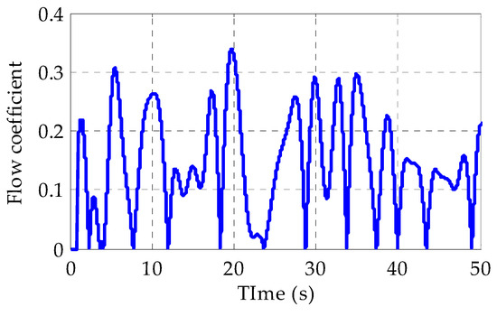 As demonstrated in Figure 3, offers the highest torque coefficient, which would therefore deliver the most turbine torque and hence the greatest production power. If flow coefficient remains below the threshold value, i.e., , turbine torque increases and subsequently the output power increases. However, when , the turbine torque decreases and thus, the output power starts decreasing.