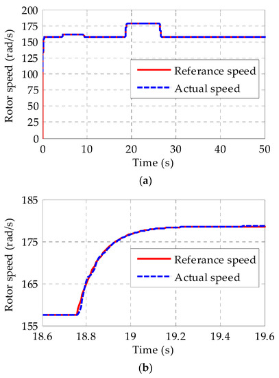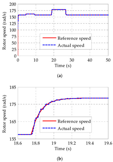 Rotor speed of the GA-BSC controlled OWC plant. (a) Rotor speed versus time. (b) Zoomed version of (a).