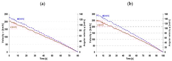 - In papers [26,38], only experimental tests on a dynamometric stand were carried out, within which friction coefficients were determined together with their evaluation. In addition, temperature distributions were obtained using thermocouples. Initial braking speeds did not exceed 300 km/h;