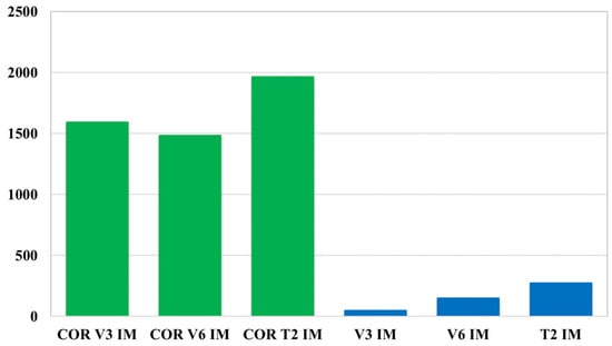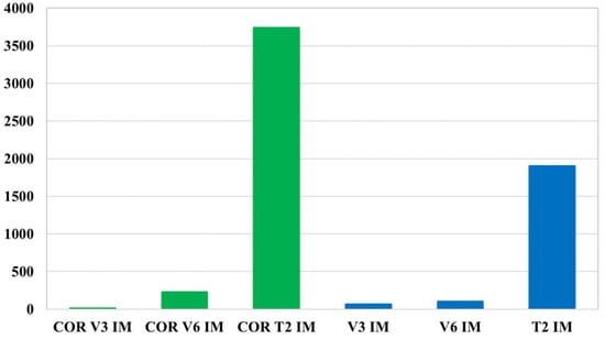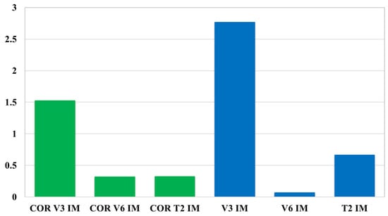 The above analyses enabled the determination of corrective factors for air pollutant emissions determined by the IM method for the V3, V6, and T2 vehicle types covered in the RDE tests. The values of the corrective factors are presented in Table 5. The corrective factors increase or decrease the original emission value calculated by the IM method and allow the determination of approximate air pollutant emissions. The indicators highlighted in italics in Table 5 require a reduction in the emissivity determined by the IM method, while other values require an increase in the emissivity determined by this method.