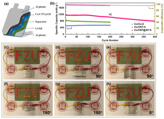 | 7 | Co/CNT@GF | 1043 mAh/g (at 1675 mA/g) | 793 mAh/g (at 1675 mA/g, 400 cycles) | deg = 180 | N/A | [43] |