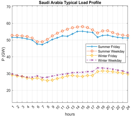 Typical day load profiles for Saudi Arabia (2020).