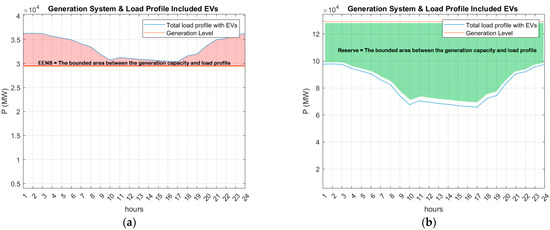 Note that the reliability assessment conducted in this paper is of hierarchical level 1 (HL1) [30], which is a generation-oriented reliability assessment considering the load without details, such as the distribution system (HL3). Although it is HL1, the generation capacity levels are not considered, and only the maximum generation capacity is considered in the simulation and the study. Since the simulation shows the impact on the maximum generation level, other levels will also be impacted. This means the system’s reliability decreases for all the levels if the maximum level is affected. This paper focuses on the impact of EVs.