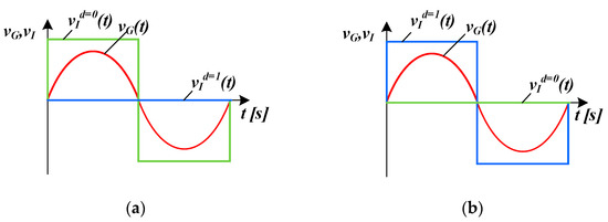 It is assumed that grid and capacitor voltages remain constant during a single switching cycle; thus, the inductor’s current rises and falls linearly, as shown in Figure 5.