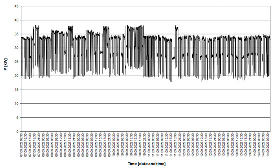 Recorded course of the variation in three-phase active power values generated in an agricultural biogas plant.