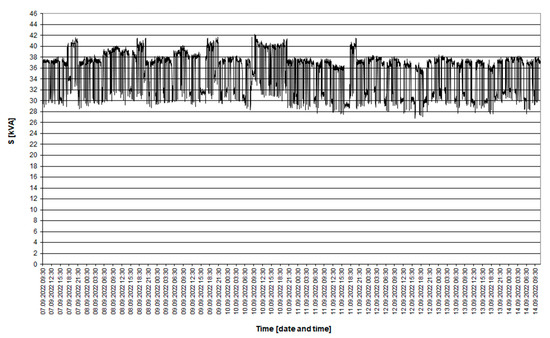 The recorded course of variation in the value of three-phase apparent power generated in an agricultural biogas plant.