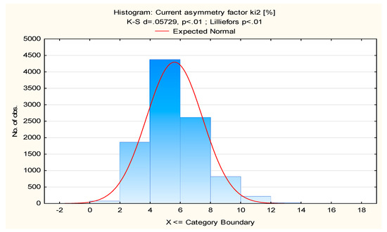 Distribution of current asymmetry values recorded at the studied agricultural biogas plant.