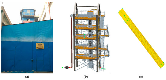This study relies on the bag filter laboratory, as shown in Figure 3a, and the digital model of the bag filter, as shown in Figure 3b, is constructed based on physical equipment. In order to facilitate the study, a single filter bag is taken as the object, and some simplifications are applied. The finite element analysis model is shown in Figure 3c.