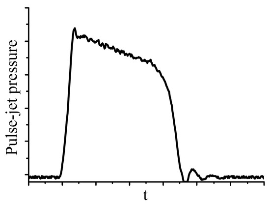 - The pressure inlet boundary condition is adopted at the inlet of the injection pipe. Considering the change of outlet pressure during the opening and closing process of the pulse-jet valve, the user-defined function (UDF) is adopted to define the function of pulse-jet pressure changing with time. According to the physical experiment, the curve of pulse-jet pressure changing with time is shown in Figure 4.