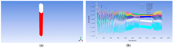The simulation process: (a) the mesh; (b) the iterations and residuals image of the simulation process.