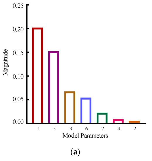 As these two steps repeat successively, the iteration ends when the magnitude of selected by Equation (7) is less than the given threshold . The selected parameters are ranked by the order in which they were picked and thus constitute the estimable subset.