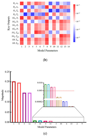 On the basis of the parameter sensitivities evaluated, the estimability of the 14 thermal hydraulic parameters is investigated via the parameter ranking approach. Specifically, the Gram–Schmidt orthogonalization process ranks the parameters from the most estimable to the least . As shown in Figure 3c, the linear correlation between the same type of parameters is relatively weak despite the coupling between the dual NSSS modules. For the predefined threshold (as indicated by the red dotted line in Figure 3c), the estimable subset initially selected includes of each NSSS module.