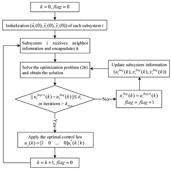 The algorithm uses the distributed economic model predictive control algorithm based on the Nash optimal method to reduce the communication burden. The algorithm process is shown in Figure 4. The specific steps are as follows: