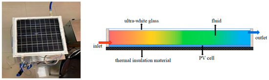 The physical PV/T spectral beam splitting module is shown in Figure 4, and the dimensions are shown in Table 2. To ensure the nanofluid’s effective absorption of solar radiation and to consider the physical strength and economy of the module, the surface is encapsulated with an ultra-white glass of 5 mm thickness.