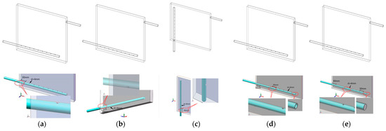 Diagram of the different arrangements at the inlet end of the interlayer (a) case II; (b) case III; (c) case IV; (d) case V; (e) case VI.