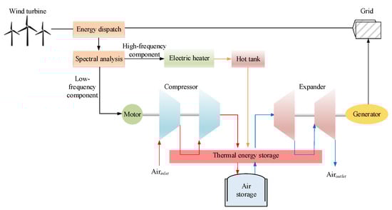 - Jin, H.; Liu, P.; Li, Z. Dynamic modeling and design of a hybrid compressed air energy storage and wind turbine system for wind power fluctuation reduction. Comput. Chem. Eng. 2019, 122, 59–65. [Google Scholar] [CrossRef]