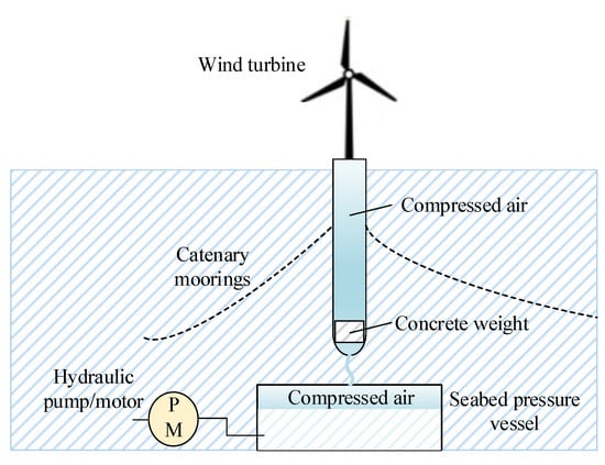 - Sant, T.; Buhagiar, D.; Farrugia, R.N. Evaluating a new concept to integrate compressed air energy storage in spar-type floating offshore wind turbine structures. Ocean Eng. 2018, 166, 232–241. [Google Scholar] [CrossRef]