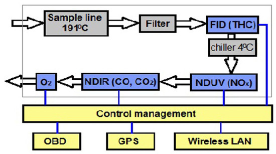 For the measurement of the exhaust emissions and fuel consumption, the authors used SEMTECH-DS, a portable analyzer (Figure 2). This equipment belongs to the PEMS group and allows for measuring the following: