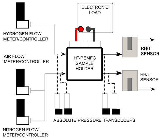 The experimental setup for HTPEMFC testing is depicted schematically in