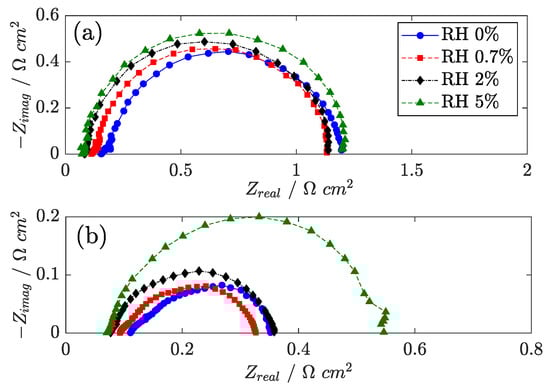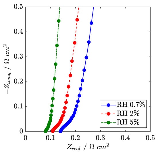 Figure 10. If ORR is eliminated, the Ohm contribution in EIS is easy to distinguish, and the positive effect of humidification in the high-frequency region of the spectrum becomes more evident.