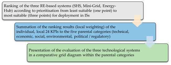 The local ranking is carried out by assigning one point to the least and three points to the most suitable system. The detailed, local weighting of the systems based on each KPI is then summarized within each parent category. This is followed by an evaluation of the technologies within the parental category, thus achieving a summarized, condensed presentation of the elaborated results. An outlook concludes the work.