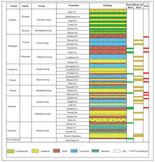 - Khan, M.Z.; Khan, M.R.; Raza, A. Reservoir Potential of Marwat and Khisor Trans Indus Ranges, Northwest Pakistan. In Proceedings of the AAPG, Istanbul, Turkey, 14–17 September 2014. [Google Scholar]