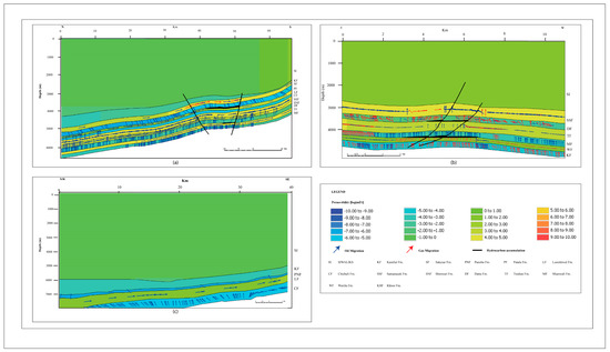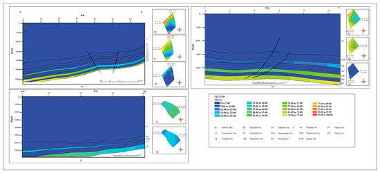 - The migration pathways indicate a vertical trend which further moved upright toward the surface as a result of overburden rocks. In the Southwestern and Southeastern zones, the local faults act as barriers for hydrocarbon accumulation. In these zones, the Tredian, Lumshiwal, and Warcha Formations have good potential to act as reservoirs sealed by intraformational shales. However, in the Northeastern zone, the faults were not identified; as a result, no hydrocarbon accumulation is present in this study area.