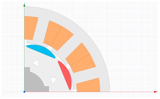 Compared to the SZEVOL motor, the optimized drive can operate with approximately 3% higher efficiency in the designated operating range. There were just slight modifications shown in terms of geometrical changes; the resulting geometry is shown in Figure 18.