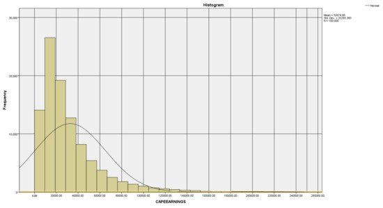 Histogram of the populated values for Capesize Earnings from 1990 to 2015.