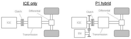 Scheme of the baseline vehicle and P1 configuration.