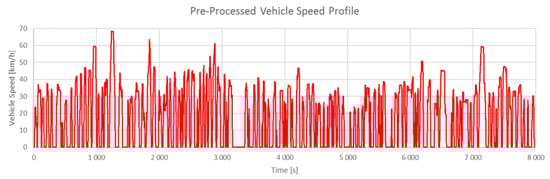 To obtain a repeatable profile which does not depend on the powertrain configuration, the mission has been pre-processed using a simplified vehicle model, to generate a time-dependent speed profile shown in Figure 4.