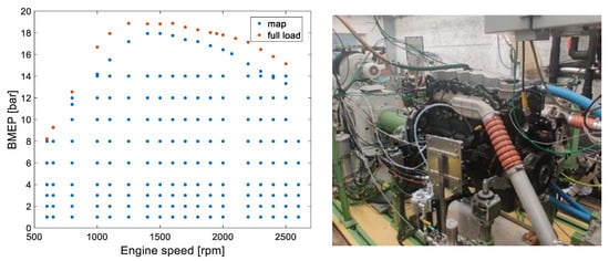 Map of experimental points measured and validated (left); experimental test bench (right).